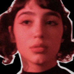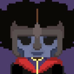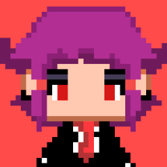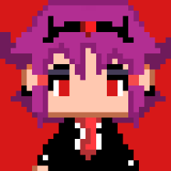 | Purple hair... red eyes. The Devil. | ||