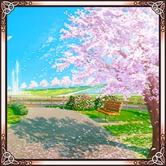 #13 Park with Falling Cherry Blossoms After the event, you and Milk rest in the park. |